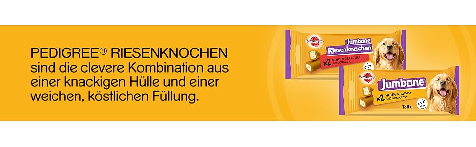 - Pedigree Giant bone dog treats are the perfect dog snack - a long-lasting pleasure. The firm exterior and the deliciously soft filling of the chewing bone really encourage chewing.