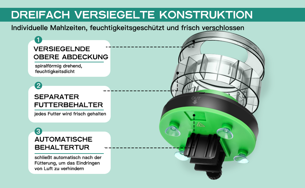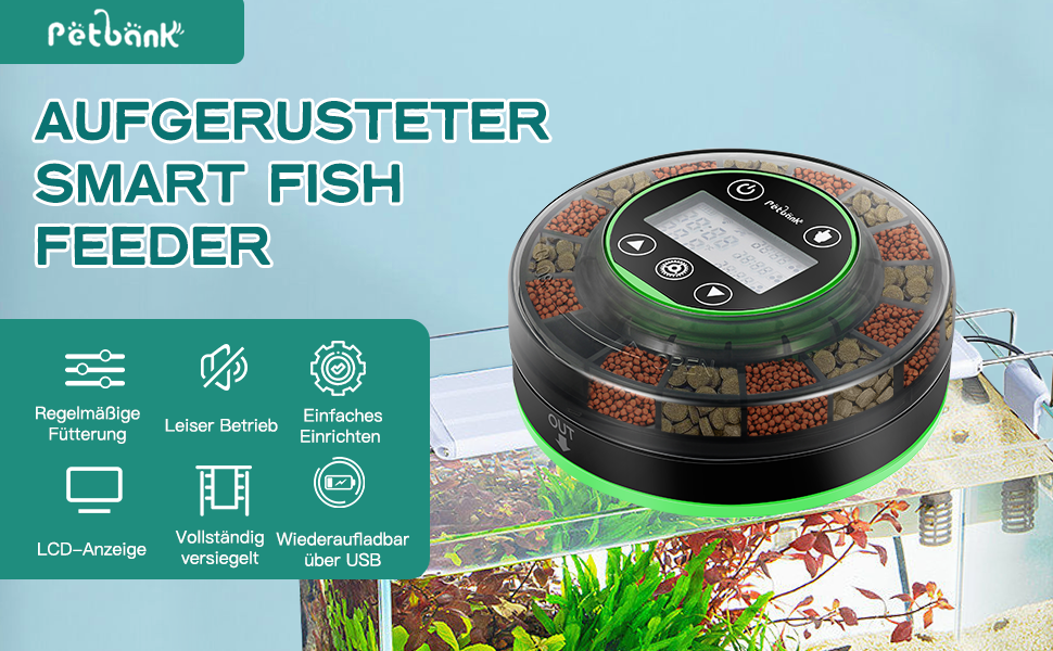 - MOISTURE RESISTANT DESIGN Unlike other automatic feeders with an opening that is always open, making the food inside easily wet or jamming, the Petbank Automatic Feeder Aquarium is fully sealed against moisture and its opening closes automatically after each feeding. This thoughtful design effectively keeps the fish food dry. Petbank automatic feeder is suitable for most types of feed
