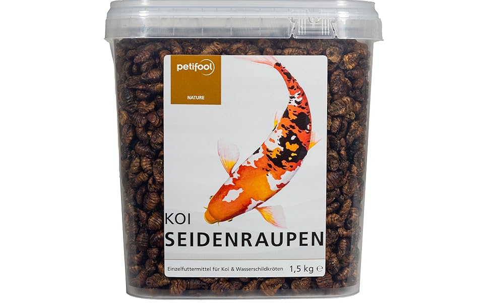 The petifool Koi silkworms are a high-quality protein supplier. Silkworms help promote the growth and formation of intense colours of koi. The petifool silkworms are a pure natural product and a special treat. They can be used as a snack.