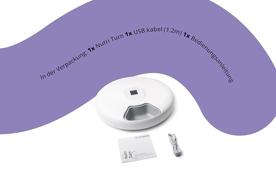 - Healthy and easy: the Nutri Turn is healthy for your cats and dogs. Many cats and dogs in Germany are overweight as they do not know when they have eaten enough. The automatic feeder ensures that your cats and dogs receive exactly the required number of portions and nutritional values. Carefully weigh the required amount.