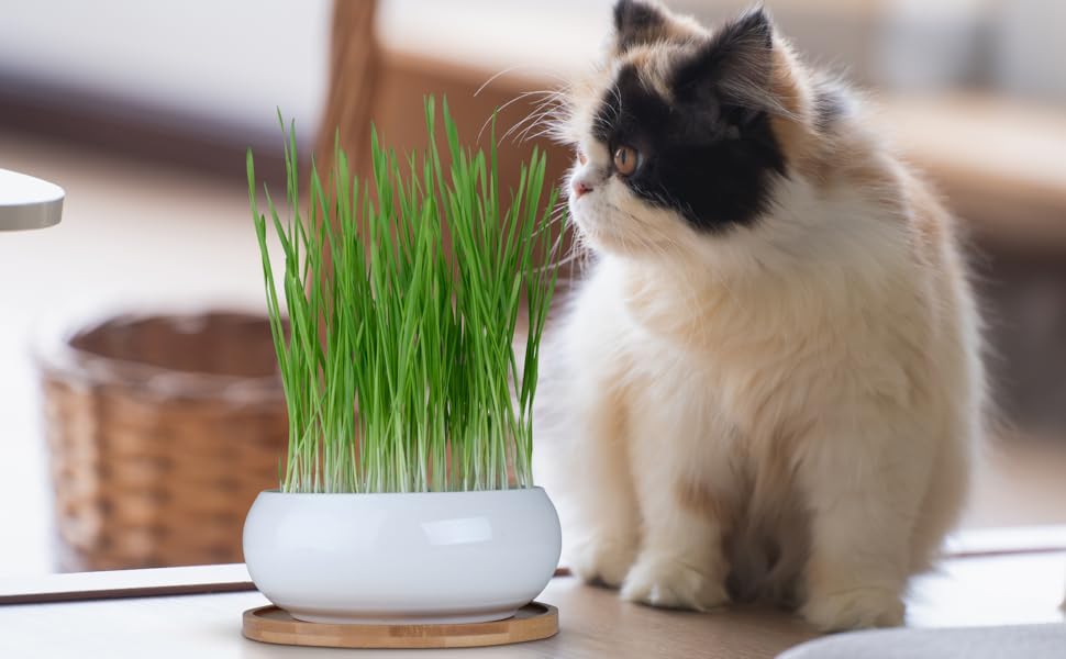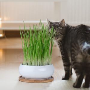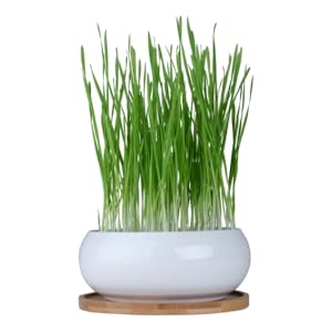 - Modern: the timeless ceramic bowl and the stylish bamboo coaster make our cat grass bowl an eye-catcher in any household. Bring a little bit of nature into your home.