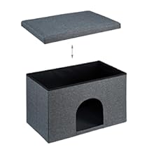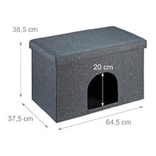 Relaxdays Cat Cave with Seat Cover, Foldable Stool, Hiding Place for Cats and Dogs, H x W x D: 38.5 x 64.5 x 37.5 cm, Grey