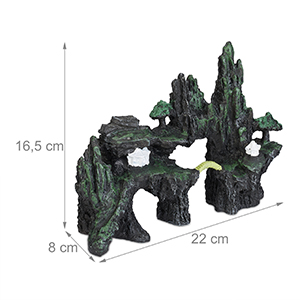 With the aquarium decoration, you can create your own underwater paradise and provide a home for its inhabitants. The boulder-shaped aquarium decoration is adorned with details, such as a temple and bridge, adding decorative accents to the tank with its natural appearance. Additionally, the aquarium cave with multiple entrances offers a great hiding spot for small fish and shrimp. Thanks to its construction from non-toxic resin, the fish tank cave does not release any pollutants into the water.