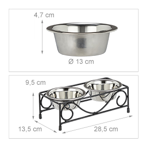 - Details: iron bowl riser H x W x D: approx. 9.5 x 28.5 x 13.5 cm - bowls made of rust-proof stainless steel