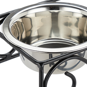 - Sophisticated: high bowl bar for neck-friendly feeding of the animals - volume per feeding bowl: approx. 300 ml