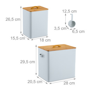 Relaxdays Food Box Set of 2, 2 Sizes, with Lid & Spoon, Bamboo, Iron, Storage Box, Dry Food, White/Natural