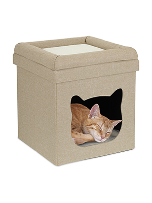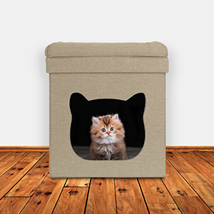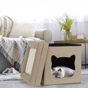 - Decorative: cube shaped cat house with light brown fabric cover - modern and aesthetic look