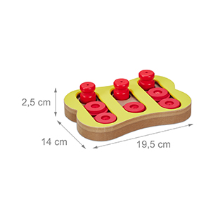 - Details: dog game made of MDF - H x W x D: approx. 2.5 x 19.5 x 14 cm. Cut-outs H x D: approx. 1 x 3 cm