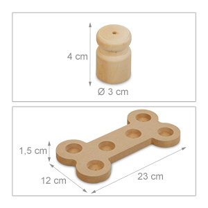 - Basics: dog game made of MDF and wood. Dimensions (H x W x D): approx. 4.5 x 23 x 12 cm. Hat dimensions (H x D): approx. 4 x 3 cm