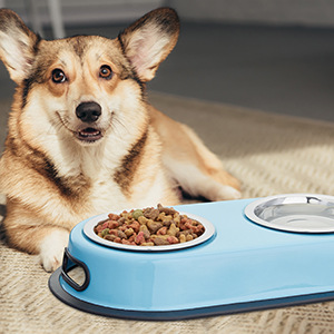 blue double bowl feeder