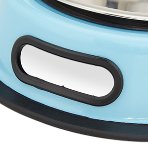 - For 2 feeding bowls: the feeding station is for two bowls and can be used for water and food at the same time. The bright sky blue of the feeding bar looks friendly and fresh