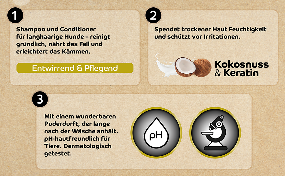 RISPET Coconut and Keratin Shampoo and Conditioner, Cleaning and Disinfectant for Dogs and Long Haired Animals, Delicate Formula Without Allergens and Balanced pH Levels, Coconut Fragrance, 370 ml