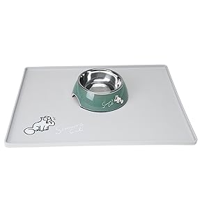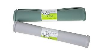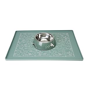 For example, these practical bowl mats made of silicone, which are available in a green and a grey version. The all-round rim prevents leakage of liquid and protects the floor from stains.
