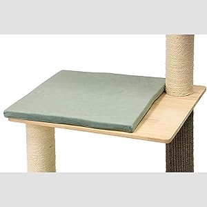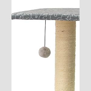 Ein toller Kratzbaum mit drei robusten Sisalstämmen zum Wetzen der Krallen. Die Bodenplatte und die oberste Plattform sind mit Plüsch bezogen. Die mittlere Plattform besitzt ein weiches Kissen. Als besonderes Extra ist an dem Kratzbaum ein Spielball befestigt.