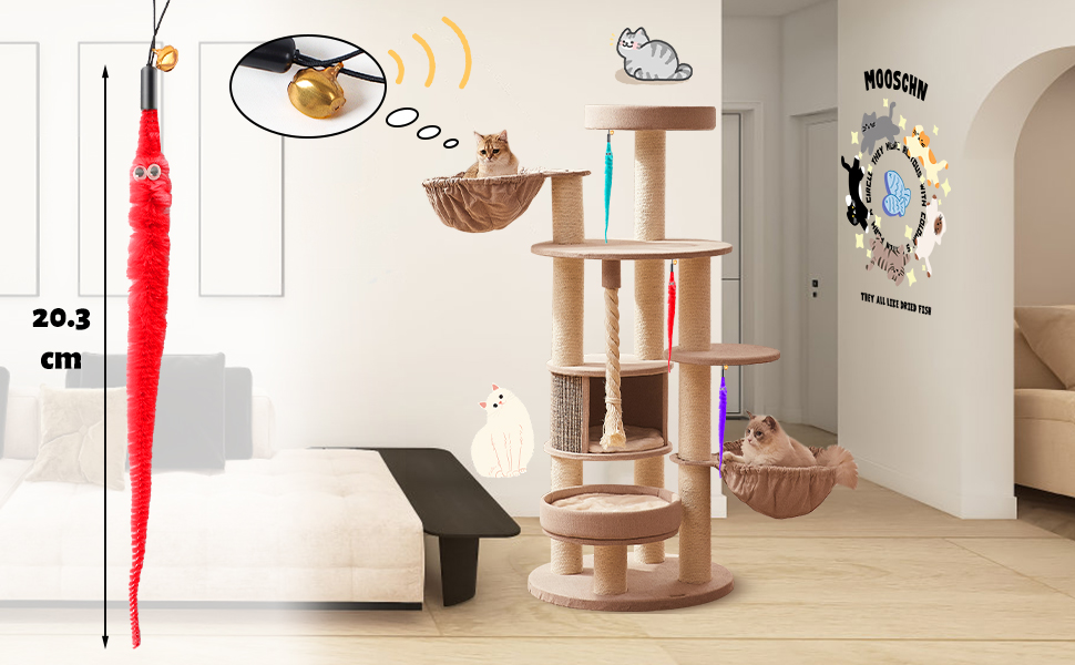 - Sisal rope toy attracts the attention of the cat: Compared to conventional cat scratching posts, this extra long and thick design sisal rope with plush, earthworm-shaped hooks allows your cat endless scratching fun and strengthens its instinct to scratch with both paws.