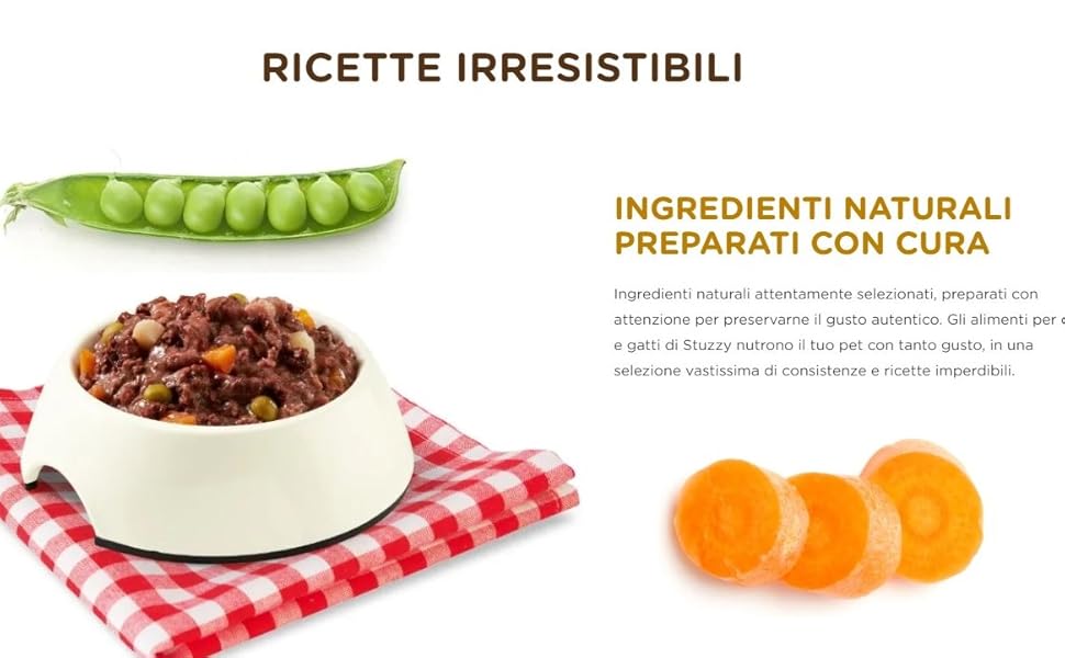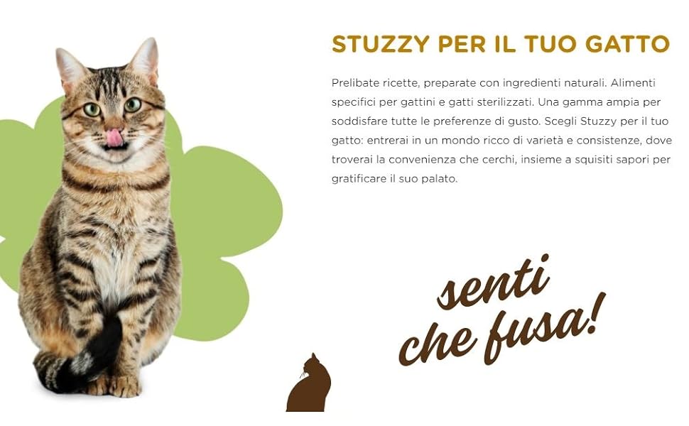 Italienische Qualität, Leidenschaft für Güte, Liebe für Haustiere. Das sind die Werte, die Stuzzy denjenigen bietet, die in jeder Hinsicht sorgfältig zubereitetes Katzen- und Hundefutter suchen.