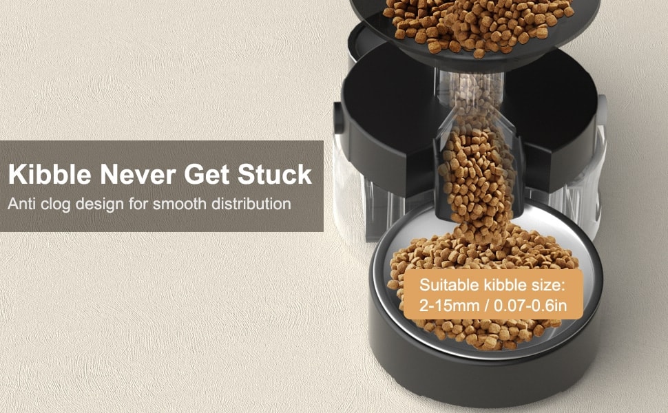 - Secure the freshness of every meal: the automatic cat feeder has a built-in desiccant bag and a secure sealing strip that effectively preserves the freshness and crispness of your pet's food. In addition, a desiccant bag in the lid ensures dehumidification and prevents moisture from entering. The innovative sealed revolving door automatically closes the feed opening after each meal, providing a barrier against ants and insects.