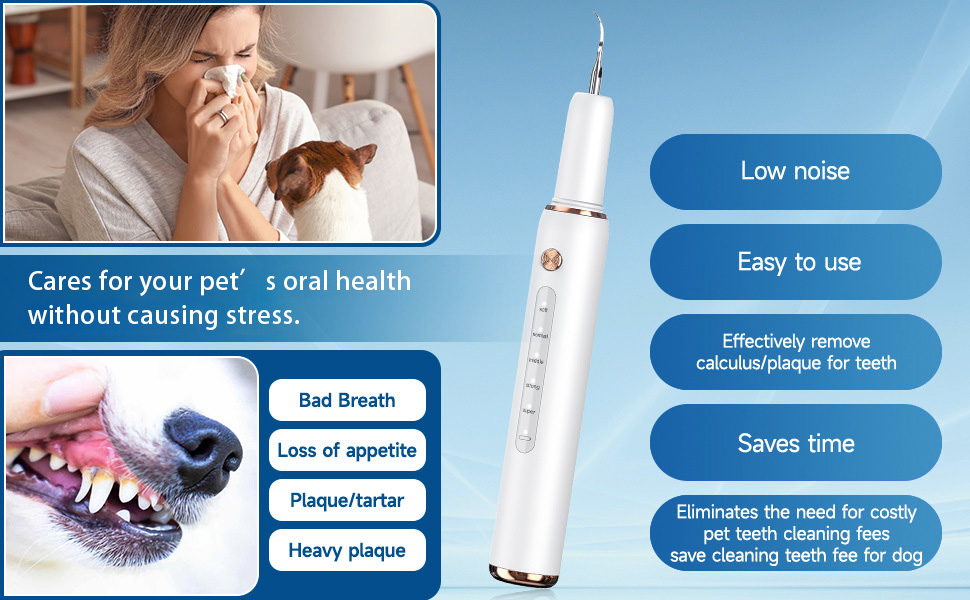 - Intelligent sensor for gentle use: the smart detection technology automatically stops on contact with soft gums and cleans only on hard tooth surfaces - safe and painless for your pet