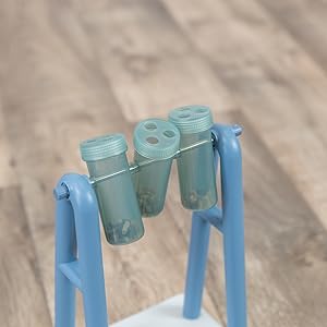 By turning the treats filled cups, your dog gets his reward. To vary the level of difficulty, two different sized openings can be adjusted in the lids.