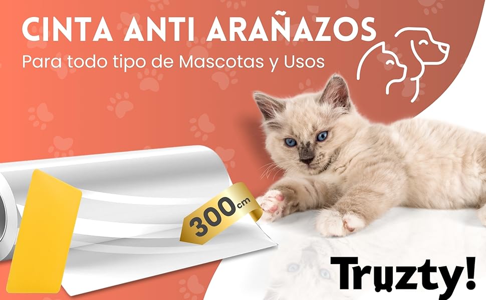 Truzty! Scratch-Resistant Tape for Cats, Scratch Protection Film, Cat Scratch, Transparent, 20 x 300 cm, with Fixed Applicator, Self-Adhesive Protection for Sofa, Furniture and Doors
