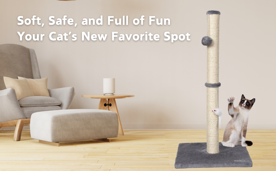 - Large Design The oversized vertical roman column shape provides an extended area that helps your cat enjoy your scratching experience.