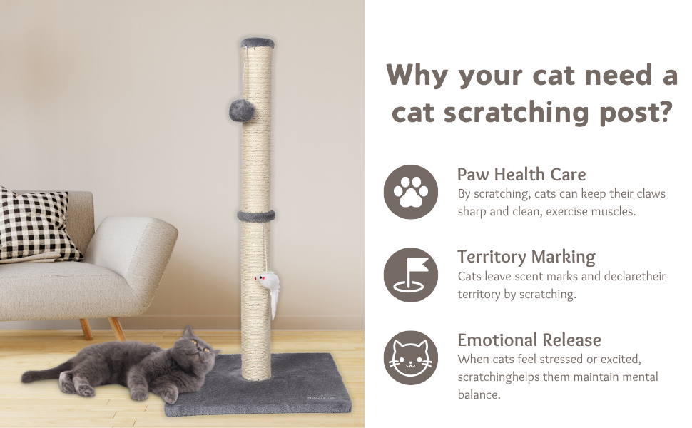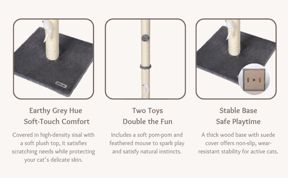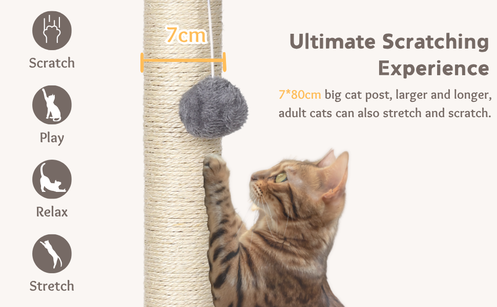 - Wear resistant sisal: robust natural sisal rope caused by daily scratches, keeps it in great conditions and reduces the need for spare parts.