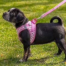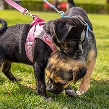 - Box contents: Curli Vest Harness Air Mesh & Basic Leash Harness Set for Puppies (Set of Dog Harness & Dog Lead, Ergonomic and Lightweight, Includes DogFinder ID), Harness Size: XS, Size Leash: M, Colour: Pink-Circles