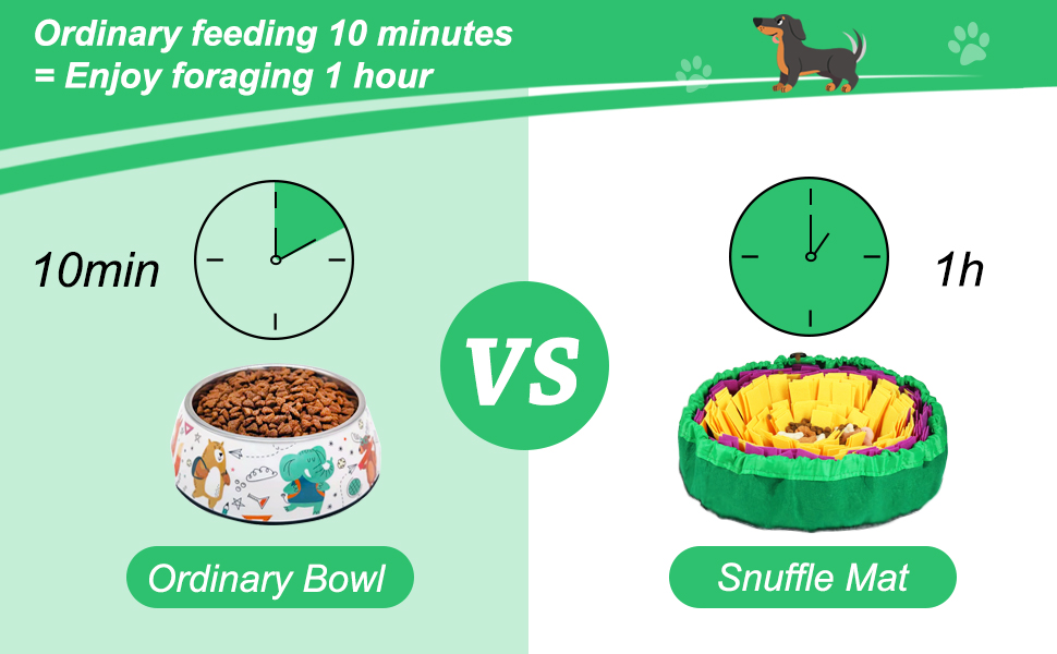 - Dual purpose dog feeding mat, mat diameter: 47 cm. Bowl diameter 33cm, ideal for large, medium, small dogs and other animals. This snuffle feeding mat is ideal for indoor and outdoor activities for dogs