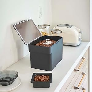 YAMAZAKI 5612 TOWER Pet Food Container (3.5 kg), Black, ABS Resin/Silicone, Minimalist, 30 x 19.7 x 19.2 cm