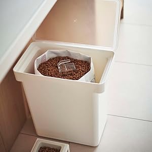YAMAZAKI 5617 TOWER Pet Food Container (12 kg), White, Polypropylene/ABS Resin/POM Resin/Silicone, Minimalist, 41 x 24 x 42.5 cm