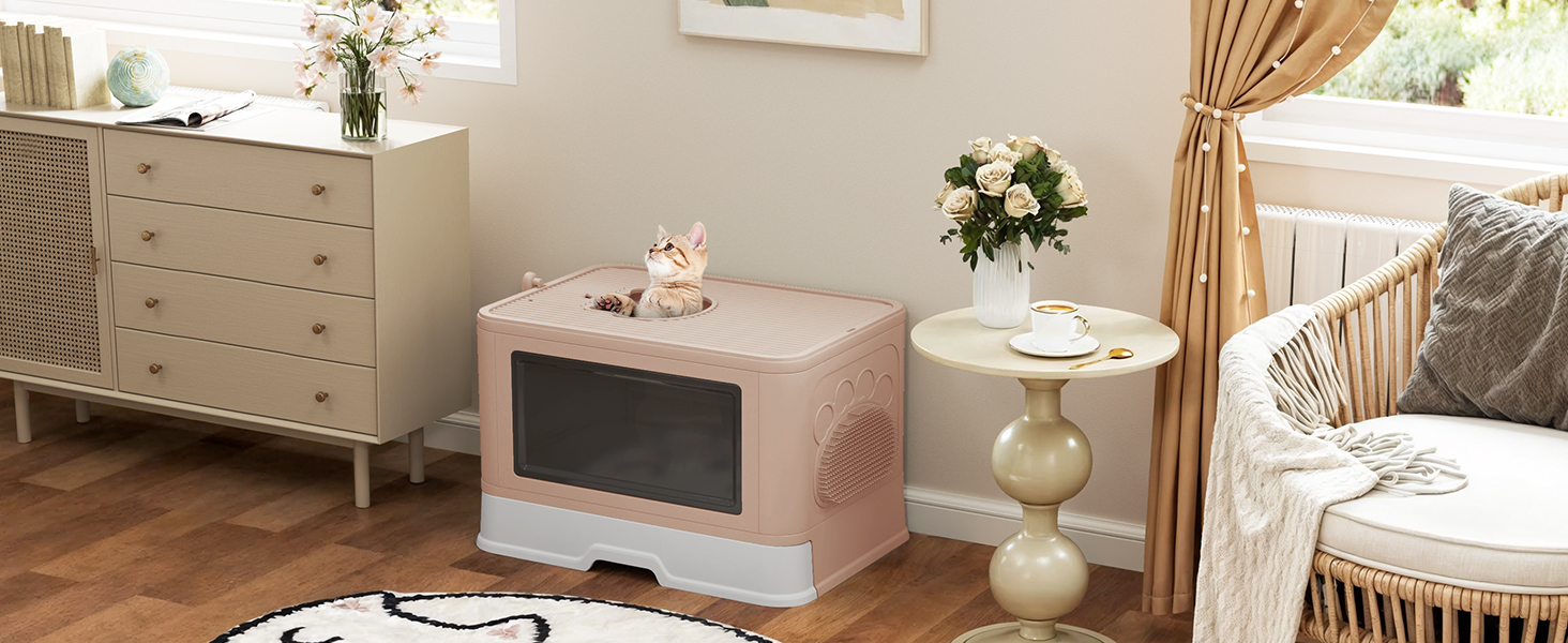 - EASY TO GET IN AND OUT - Cats can enter through the front entrance and pop out from above. The large hollowed out area on the ceiling ensures that waste is filtered when jumping out into the box