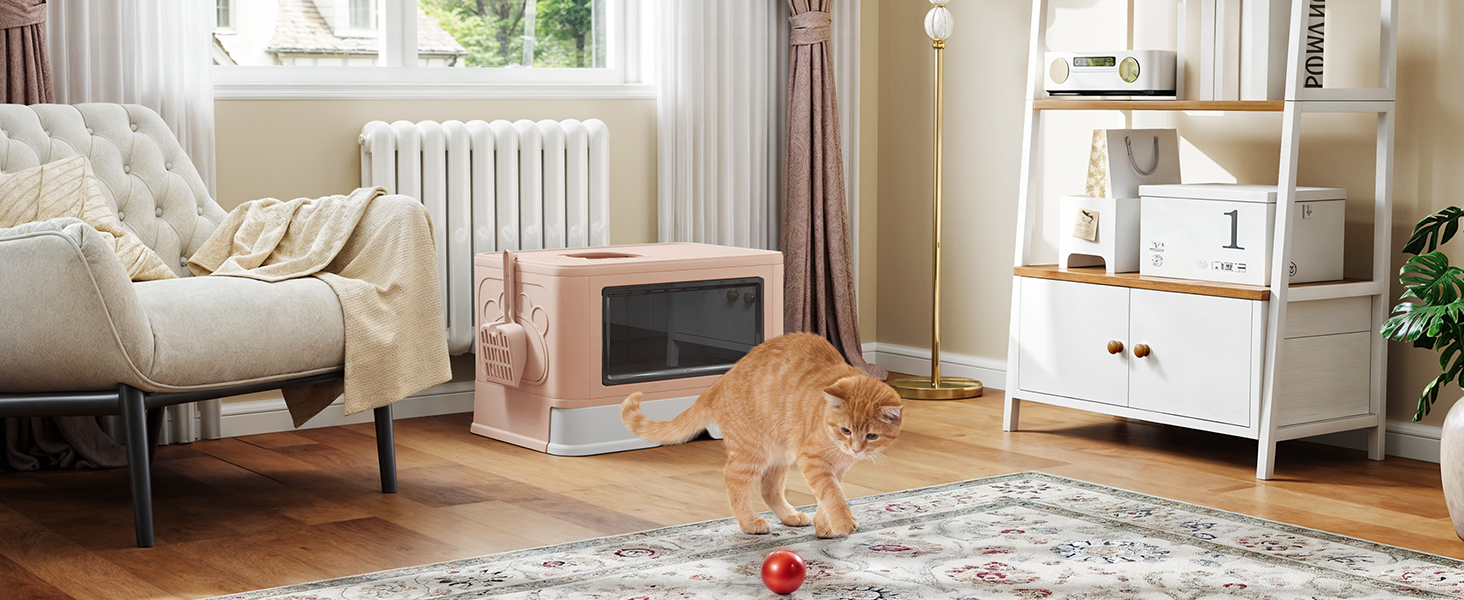 YITAHOME Large Cat Litter Tray with Lid, Odourless Hop In Toilet, Includes Litter Scoop and Cleaning (Pink)